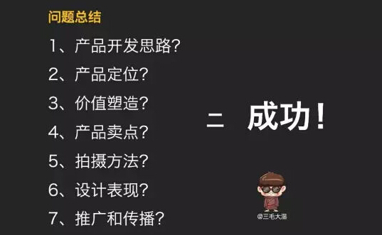 从产品的开发,到整个产品的定位,产品的价值塑造,卖点的包装,拍摄的方法,视觉的表达,推广和传播,六七个步骤,共同解决一个商品是否热卖。