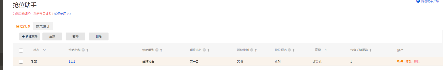 设置完毕之后可以在策略之中去选择暂停、修改、删除操作