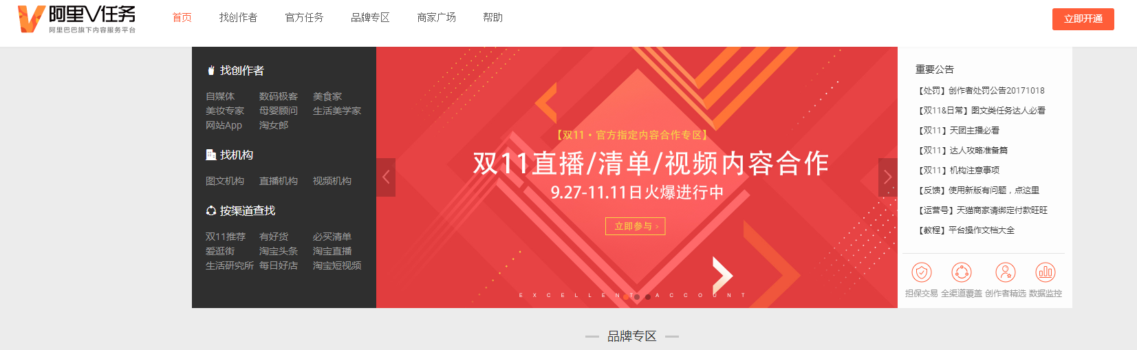 打开网址之后,我们会来到一个阿里v任务。在这里,如果你是商家,你可以在这里去找达人,帮你的宝贝做一些展现,帮你去引流。如果你是达人的话,可以在这里进行招募商家,帮他们去做推广。在这里有哦很多的推广方式,比如淘宝达人、爱逛街等。内容形式和达人领域我们都可以去选择。那怎么样才能找到达人呢?看你自己需要从哪一个端口引来流量,比如想在有货里面得到展示,那就可以在首页按渠道查找“有好货”,点击进入之后,选择你的领域,下面就会有很多的达人,